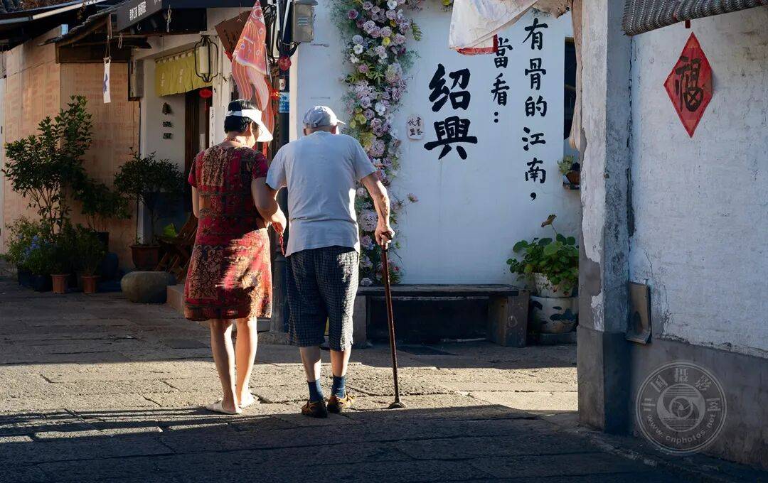 25年8月28日摄于绍兴王羲之古里,绍兴的古巷里,女儿搀扶着父亲缓行。阳光洒落,画面满是温情。“搀扶的暖”,既点出亲人相伴的脉脉温情,也与绍兴这座“有骨的江南”之城,形成刚柔相衬的美好意境。